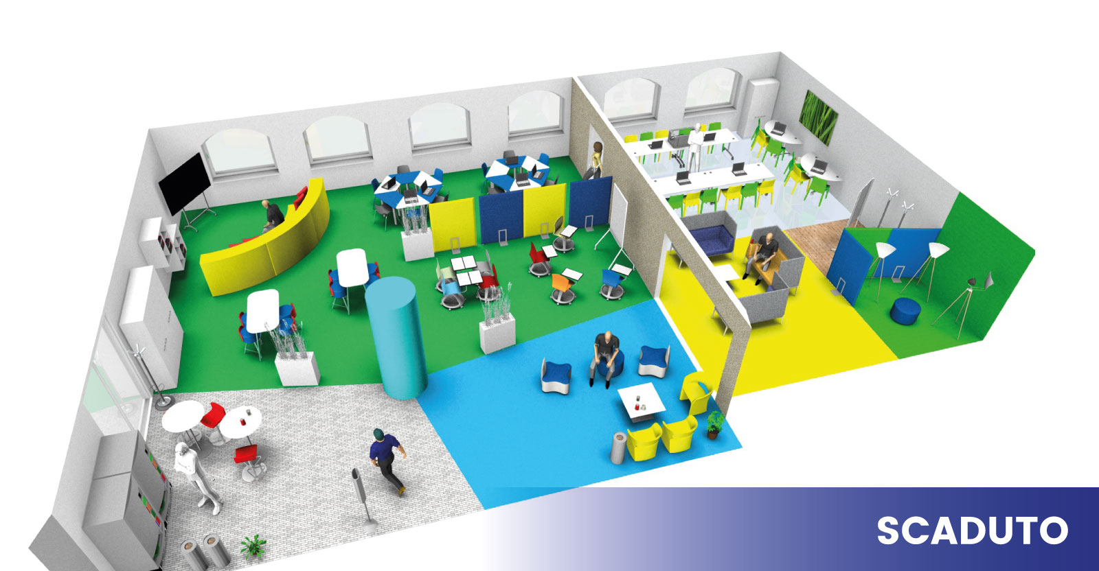 Gli ambienti e gli arredi devono essere flessibili e adattabili alle diverse esigenze e metodologie didattiche innovative attraverso tavoli componibili e modulari, sedute mobili, armadietti per le risorse didattiche e digitali e molto altro.