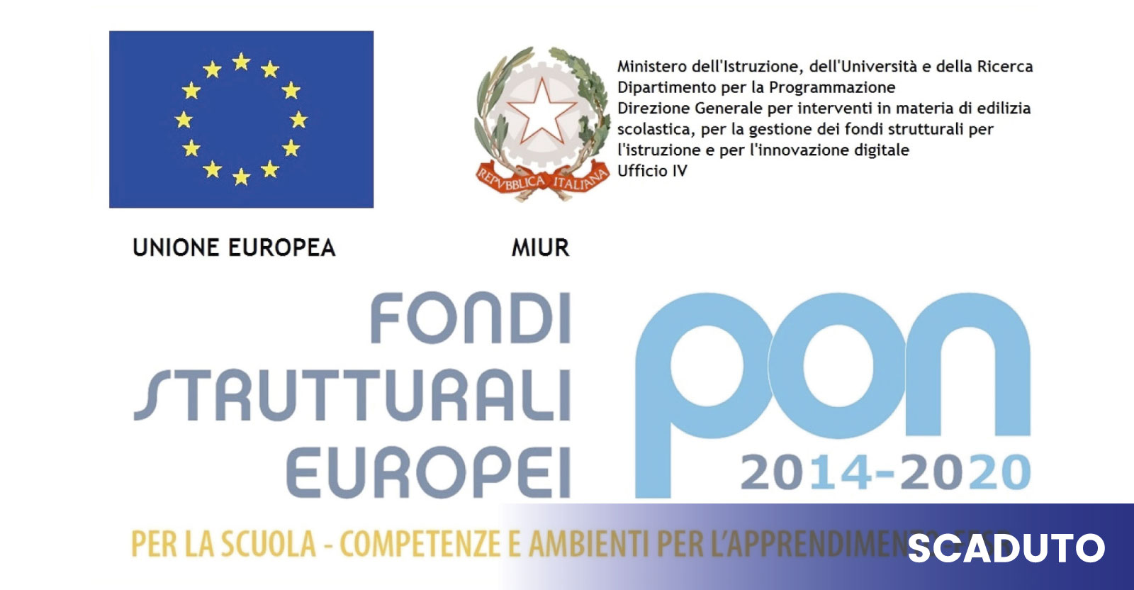 Il Programma Operativo Nazionale (PON) del Ministero dell’Istruzione, dell’Università e della Ricerca, intitolato “Per la Scuola – competenze e ambienti per l’apprendimento”, finanziato dai Fondi Strutturali Europei contiene le priorità strategiche del settore istruzione e ha una durata settennale, dal 2014 al 2020.