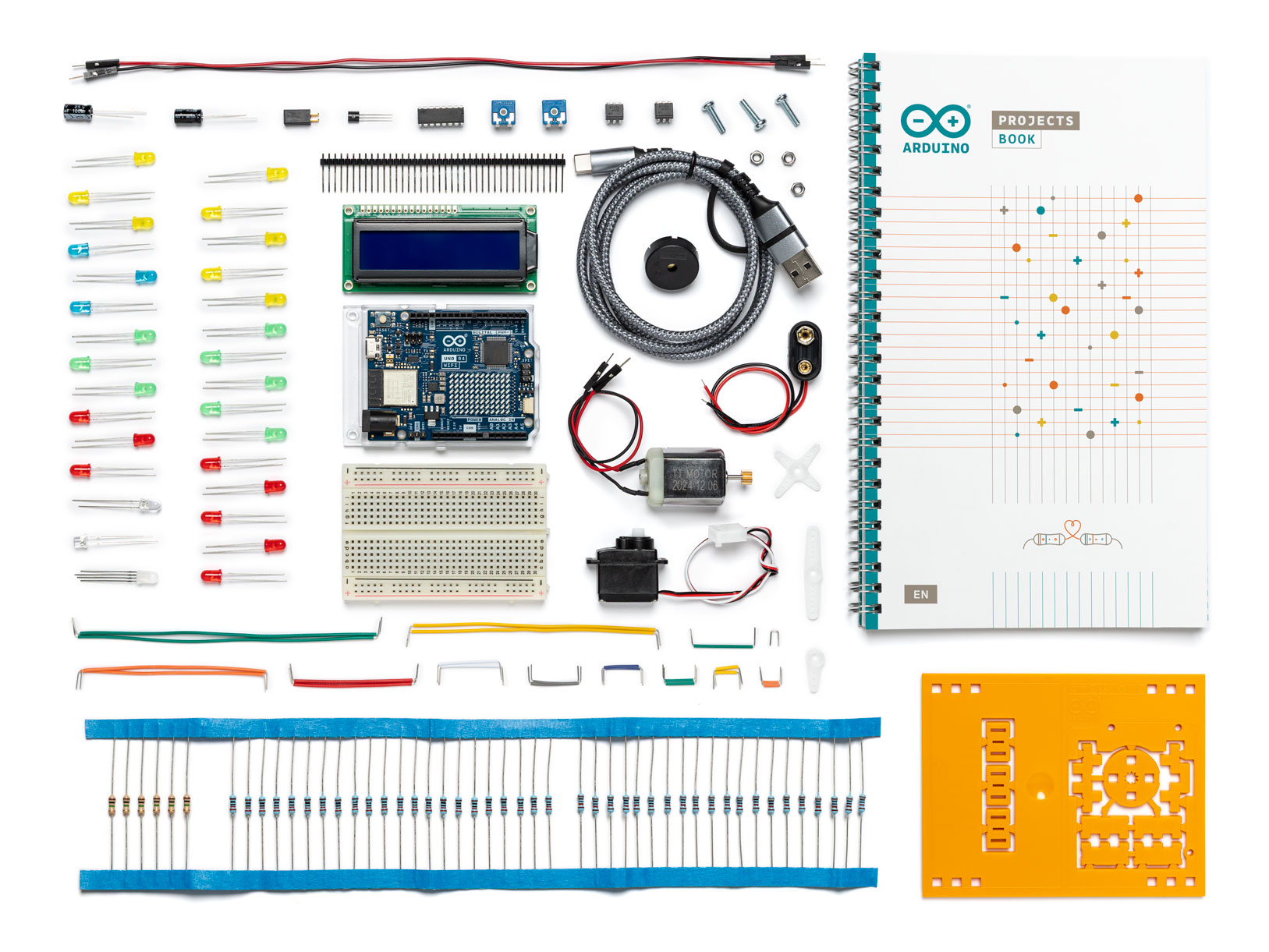 Al centro del kit c’è la Arduino® UNO R4 WiFi, la nuova generazione della board più iconica: più potente, con Wi-Fi®/Bluetooth® integrati e LED Matrix per sperimentare da subito progetti interattivi e connessi.