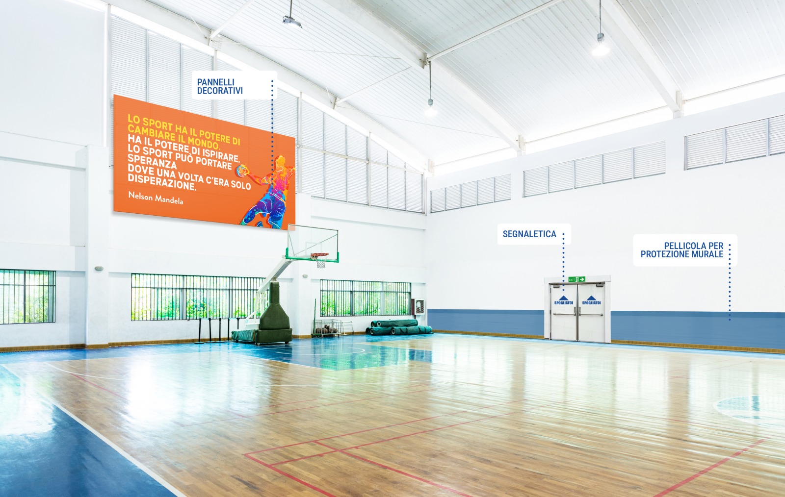 Sono la soluzione ideale per corridoi, ingressi, aule, palestre e tutte le aree soggette a intenso passaggio.