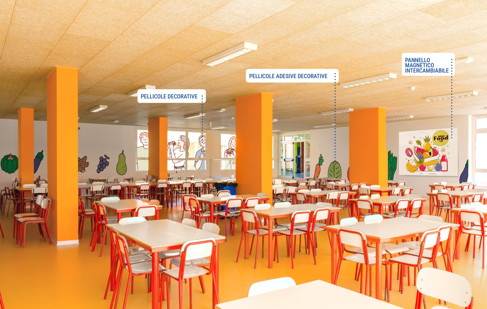 Le pellicole adesive decorative sono una soluzione versatile e funzionale per valorizzare gli ambienti didattici, rendendoli più accoglienti, stimolanti e coerenti con l’identità della scuola. In base alle esigenze educative e progettuali, realizziamo pellicole personalizzate applicabili su pareti, arredi, vetrate e pavimenti